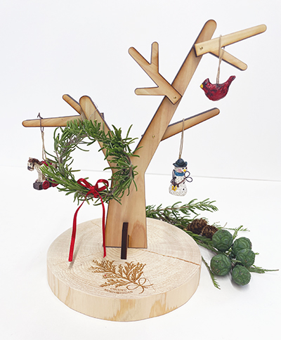 ちょっとしたスペースに飾れるクリスマスツリーを作りませんか?材料は、東京都檜原村のヒノキの間伐材。木の香りに癒されながらパーツを組立てて完成させます。シンプルなデザインのツリーは、クリスマスだけでなく、和風のオーナメントでお正月にも。また、アクセサリースタンドとしても楽しめます。